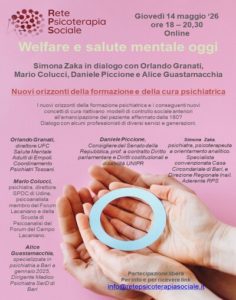 Una giornata per comprendere e sperimentare insieme una nuova postura sociale della clinica psicoterapeutica. Come si colloca nel panorama del welfare contemporaneo, che etica la guida, cosa cambia nella teoria e nella pratica della cura e dunque nella sua qualità.