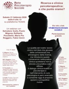 La qualità della nostra attività clinica dipende anche da quanto siamo capaci di riflettere su di essa anche alla luce dei riscontri esterni che riceviamo e che possono essere preziosi ausili per la nostra crescita professionale. In questo seminario, la Rete per la Psicoterapia Sociale propone un confronto di alcuni ricercatori e clinici che hanno sviluppato un pensiero aggiornato in merito al rapporto clinica psicologica e ricerca. Per guardare tre sessioni del seminario:
