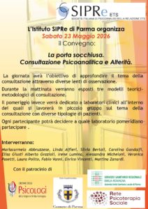 14.30 – Laboratori clinici in piccolo gruppo sul dispositivo della consultazione psicoanalitica attraverso la presentazione e riflessione su casi clinici con setting e pazienti di diversa tipologia: